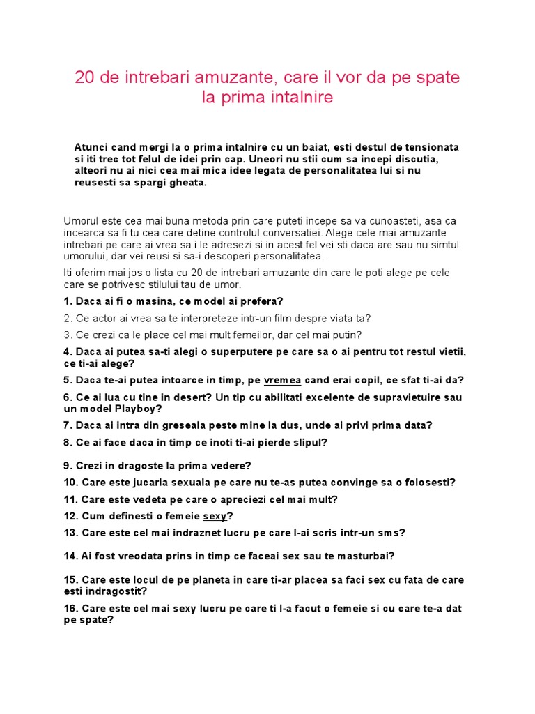 20 De Intrebari Amuzante Pt Prima Intalnire Pdf